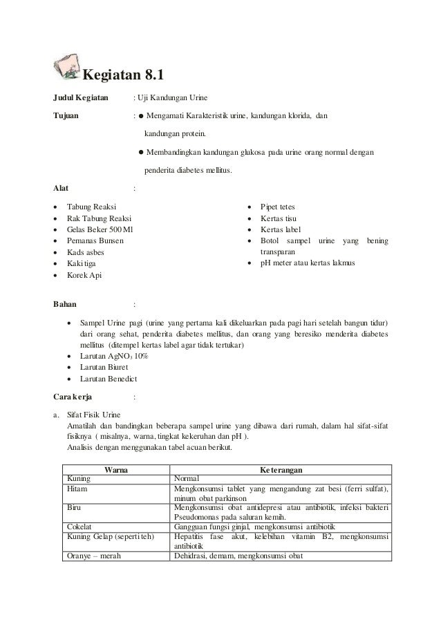 Laporan Praktikum Biologi UJI KANDUNGAN URIN Sumber www.slideshare.net